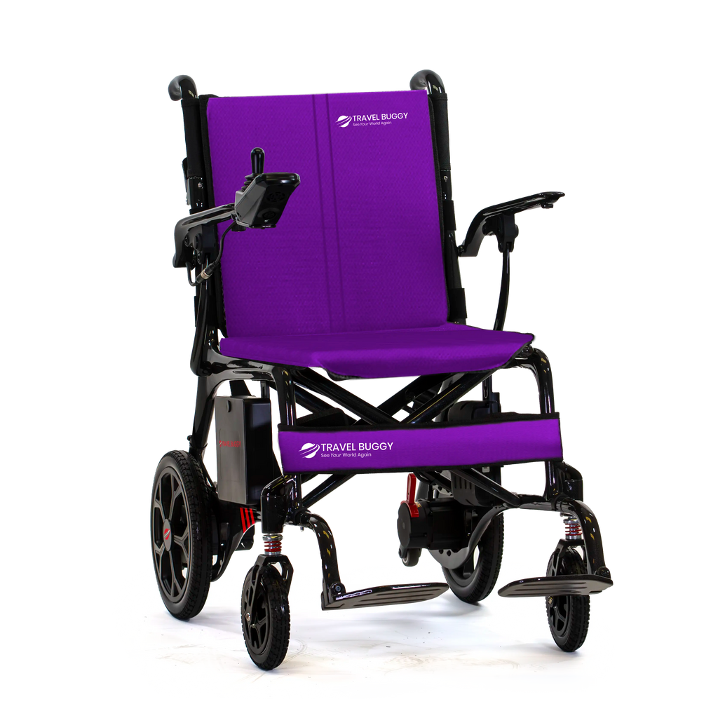 Featuring a revolutionary cross-folding, carbon fiber frame that weighs only 29 lbs. The AEROLUX by Travel Buggy is our lightest power chair ever.