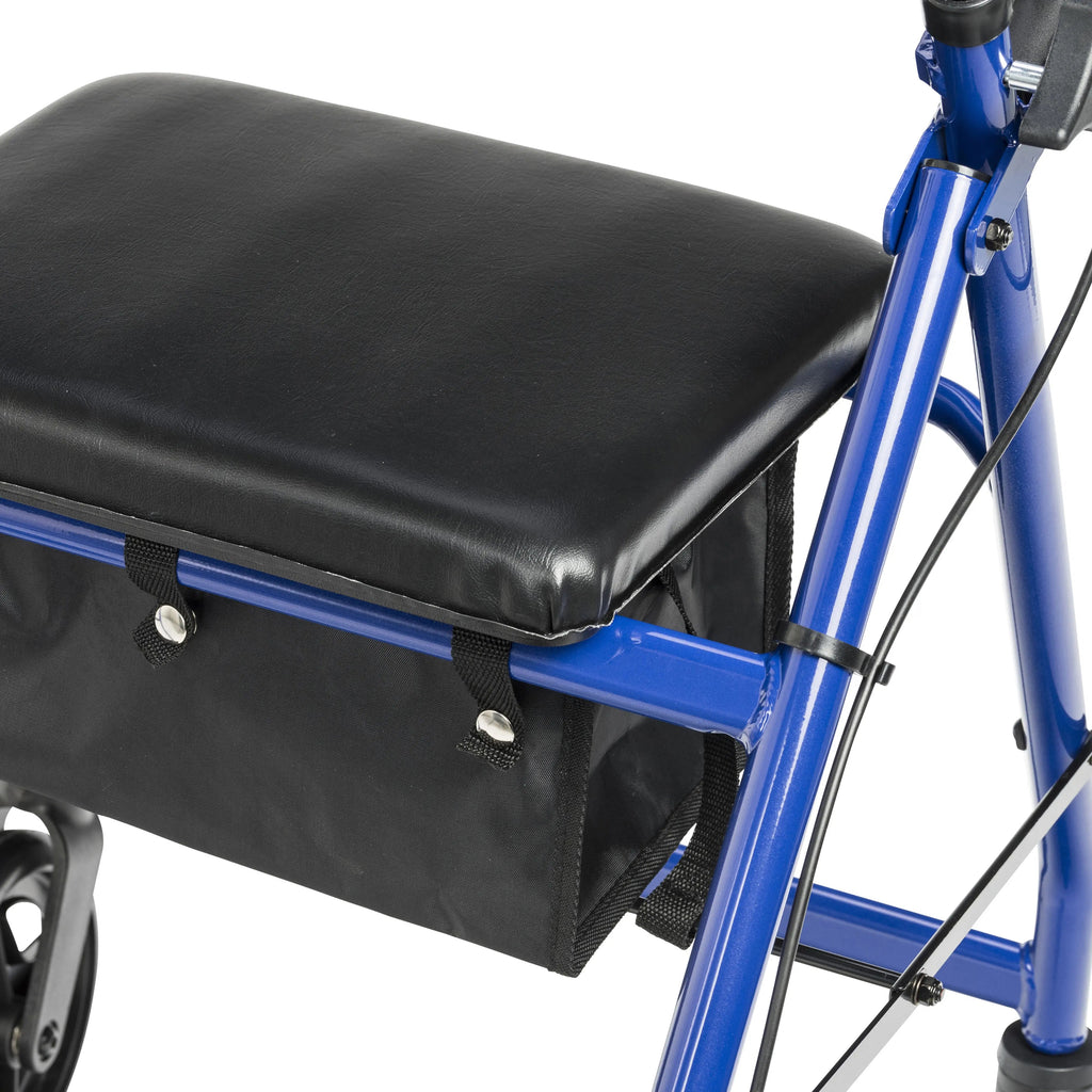 If you're seeking a safe, convenient aid to improving your daily mobility, a Rollator can be the ideal solution. Wheels make a Rollator a superior option over a standard walker, eliminating the need to lift the device and allowing you to walk with an easy, smooth gait. Plus, Rollators are better for travelling over uneven, outdoor terrain, making them great for your active, busy lifestyle. And with the built-in seat found on a Rollator, you'll always have a convenient place to rest. Drive's Aluminum Rollator with Fold Up and Removable Back Support is the perfect unit to suit your needs and your style. It's designed and built for maximum comfort, durability, and ease of use with quick folding ability and simple handle height and angle adjustment. It has a seamless padded seat for maximum seated comfort. The backrest is also padded and the large wheels ensure smooth travel over a variety of different terrains. It even has a convenient, zippered pouch for privately and securely carrying items with you on the go.