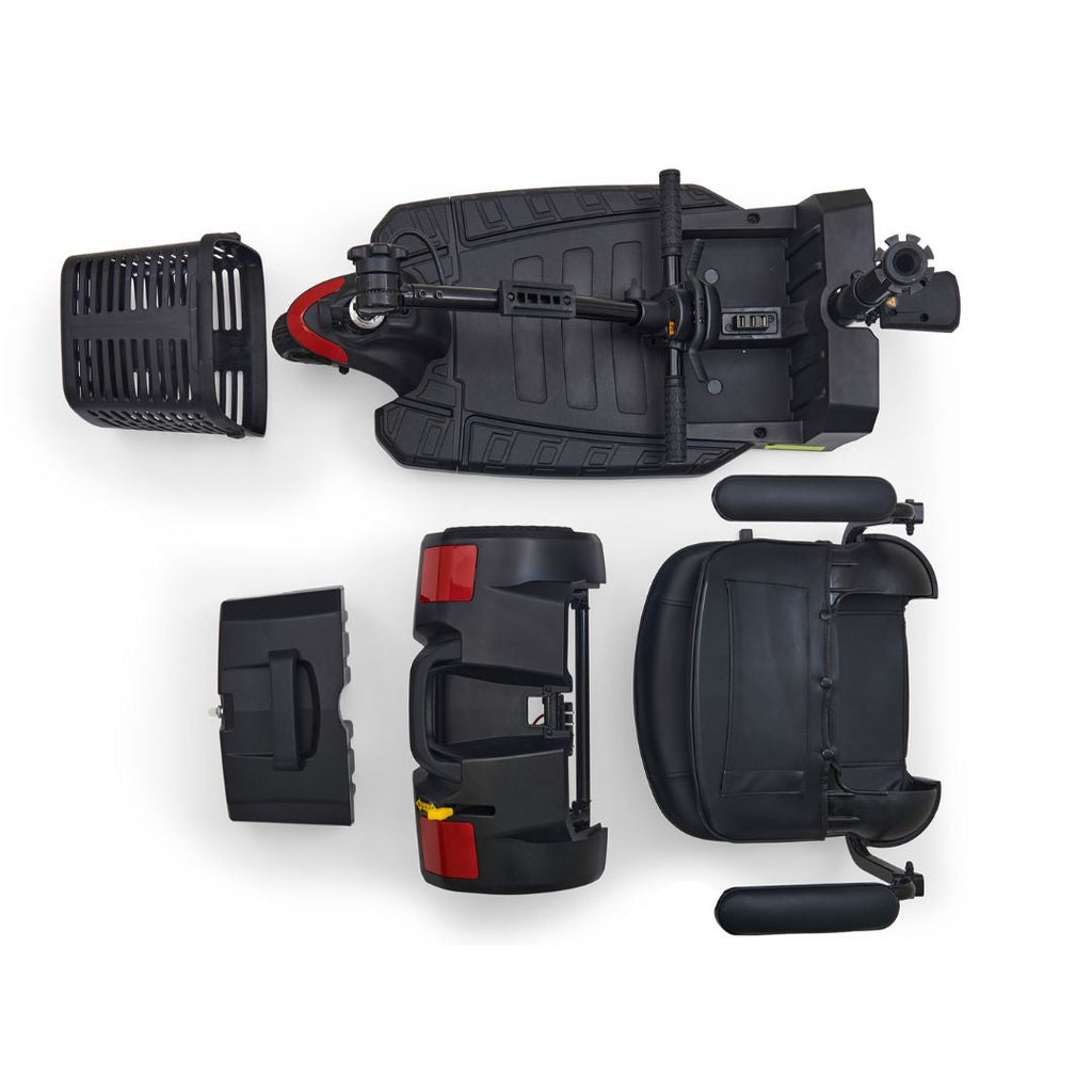 The Buzzaround LT 3-Wheel scooter is the smallest, lightest, and most portable Buzzaround scooter to get you where you want to go in comfort and style. Upgrades include a sleek and sporty blacked-out design, a lightweight padded stadium-style seat, contoured hand grips, and a longer adjustable tiller for the ultimate driving experience. The Buzz LT features a color display on the console, clear-coated plastic color through shrouds (red installed and blue included in the box), scuff guard on the foot deck, and additional side reflectors for added safety. With a weight capacity of 300 lbs., it also has increased foot room, a convenient charging port on the tiller, and a rugged hard plastic basket. Enjoy its indoor maneuverability and smooth outdoor ride with 2.5″ of ground clearance!