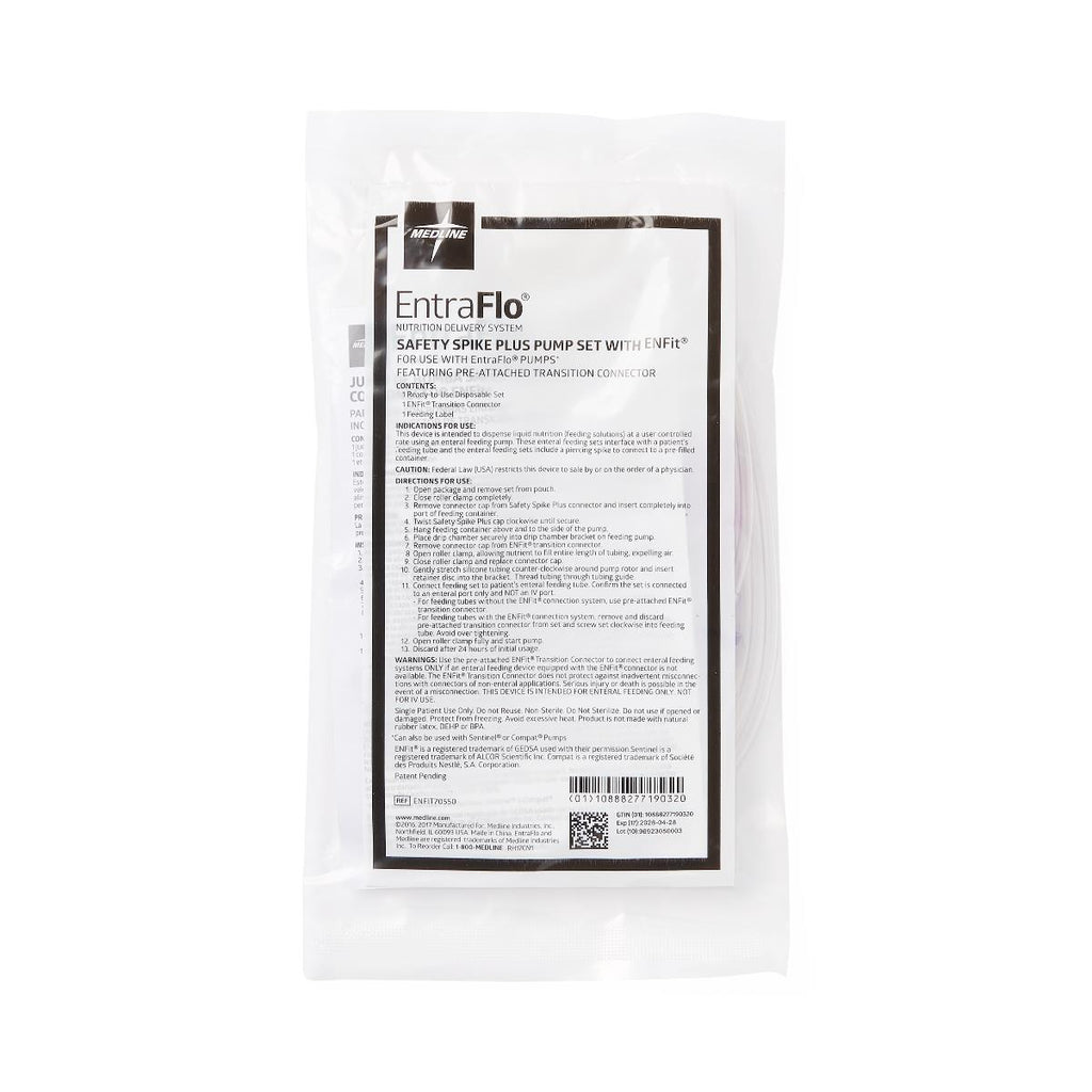 Cs/30 Medline Entraflo Pump Set W/ Spikeright Plus Connector W/ Pre-Attached Enfit Transitional Connector
