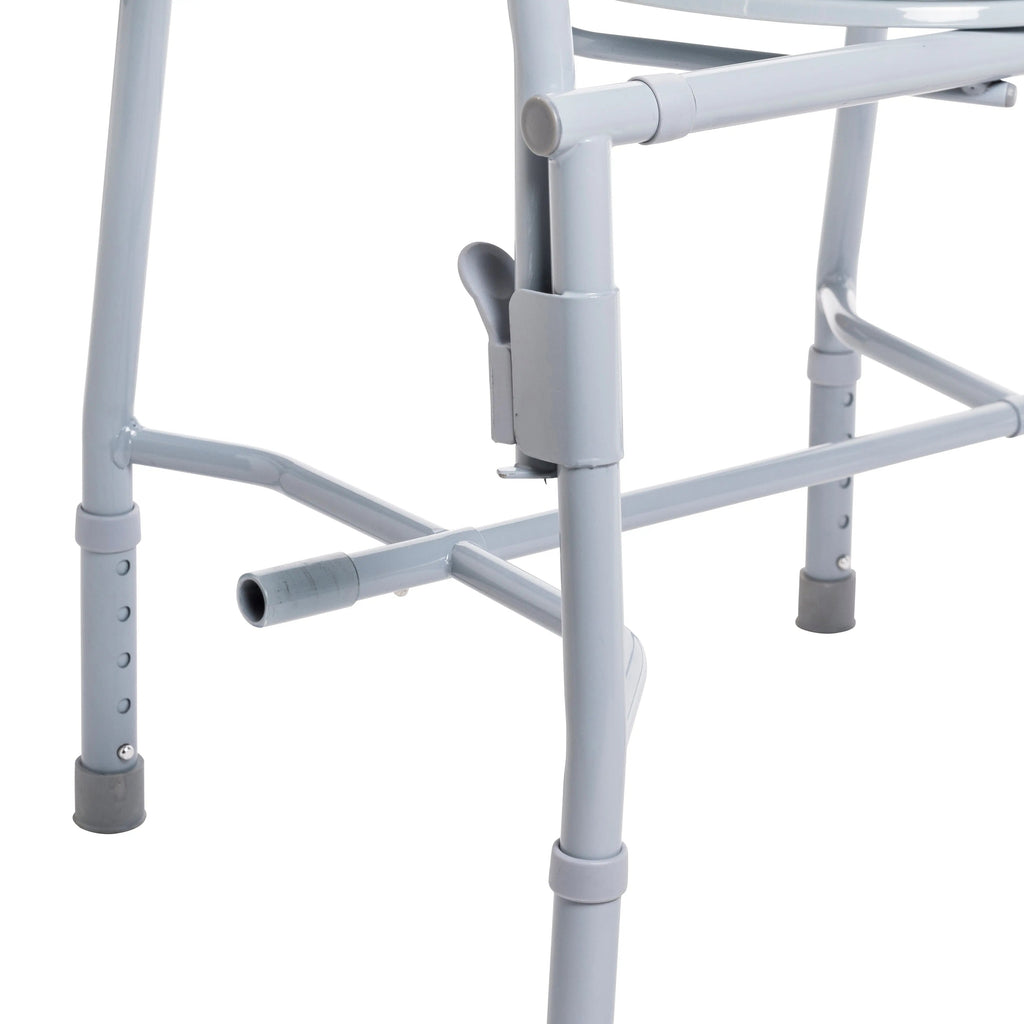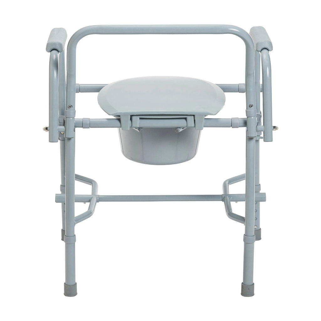 - Comes with 12 qt commode bucket with carry handle and splash shield