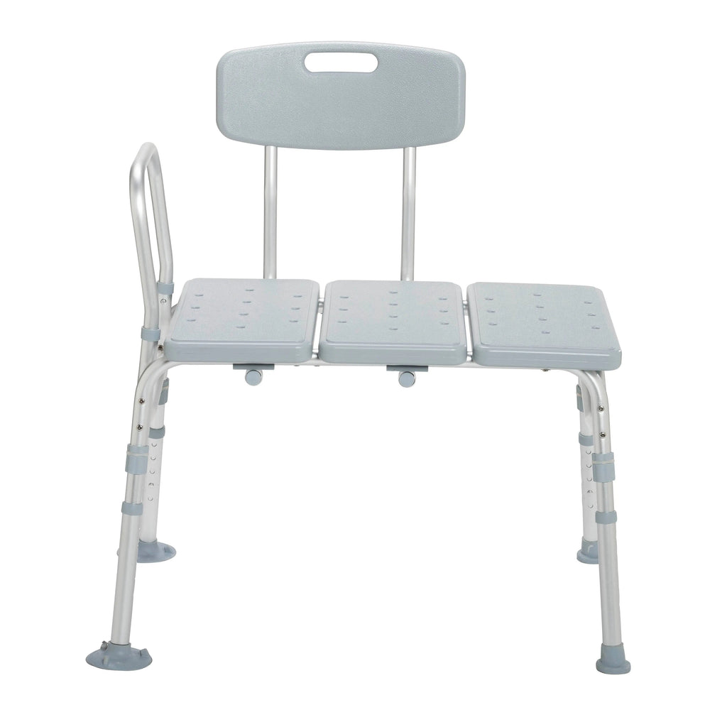 Getting into and out of the tub can be quite a challenge if you suffer from poor balance, arthritis, limited mobility, or injury issues. If you're finding that simply taking a shower has become a concern, you might find that a transfer bench from Drive Medical is the solution you've been looking for. The transfer bench allows you to sit down outside of the tub and then maneuver yourself into the tub where you can remain seated throughout the shower. You'll find the experience more comfortable and safer than before with a stable plcae to sit in the tub. Plus, you'll eliminate the need for assistance, increasing your independence. The Three Piece Transfer Bench is lightweight, assembled without tools, and has height adjustable legs with non-slip feet making it a simple, easily portable and safe bathing solution. It also includes a removeable backrest and armrests to make the experience of sitting in the shower even more pleasant.